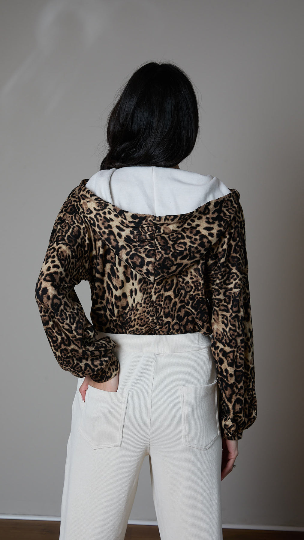 חולצת הנקה עם רוכסנים משני הצדדים מבד דק ונעים למגע עם כובע קפוצ׳ון ופרינט מנומר ומלא בסטייל.