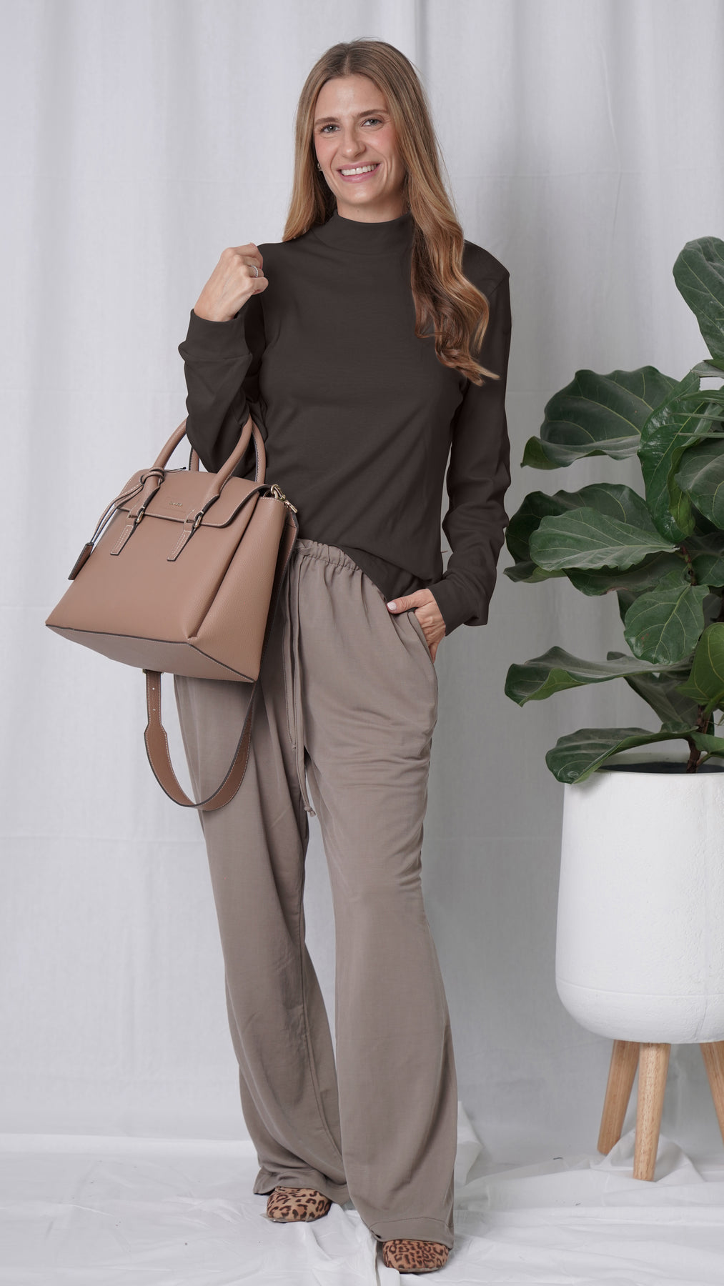 החולצה שתשדרג כל לוק אמא של אמא מניקה ותשתלב עם כל פריט שיש לך בארון: חולצת הנקה עם צווארון גולף אלגנטי, עשויה מ־כותנה מלאה ונעימה במיוחד בצבע חום כהה חורפי, אופנתי וסופר מחמיא.